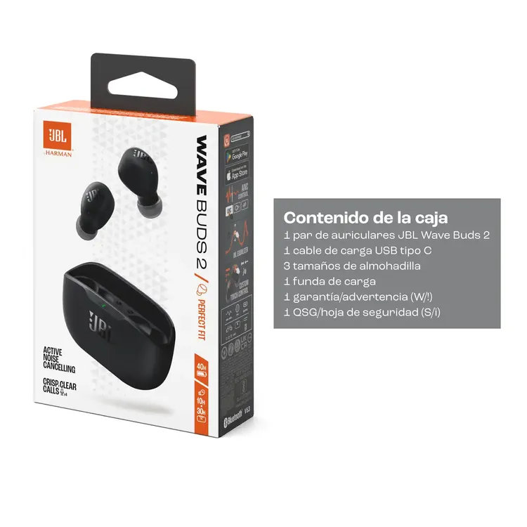Audífonos JBL Inalámbricos Bluetooth In Ear TWS Wave Buds2 Cancelación de Ruido Negro