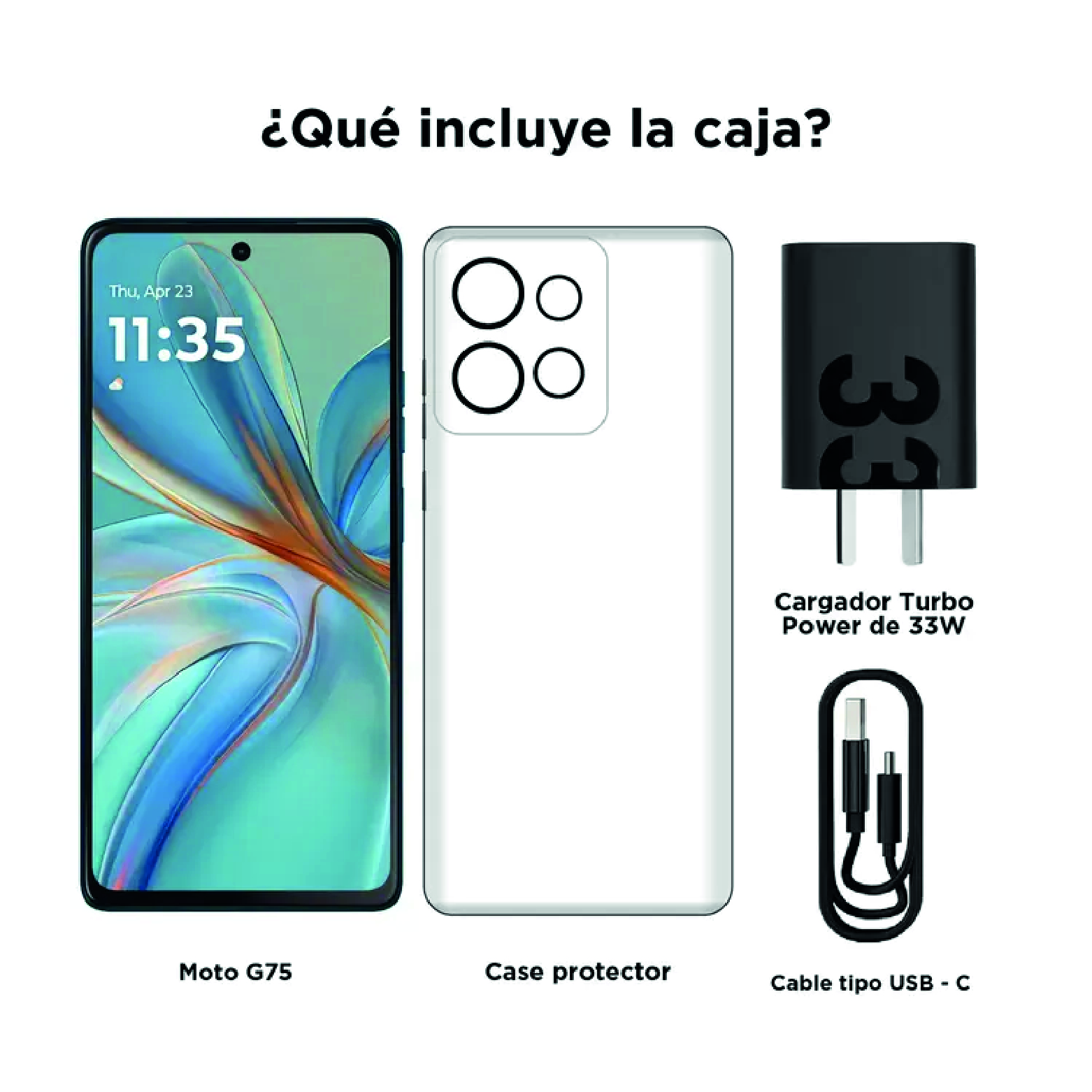 Cargador de 33W, Cover protector, Cable USB tipo C, Manual, Herramienta de Remoción de SIM