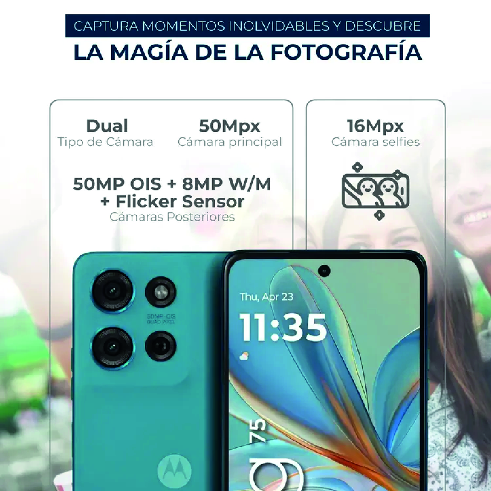 El Moto g75 está fabricado con materiales de primer nivel y cumple con estándares militares de durabilidad para que lo uses sin preocupaciones. Captura fotos y graba videos nítidos gracias a su poderosa cámara con estabilización óptica de imagen y disfruta al máximo del contenido de entretenimiento en la pantalla de alta definición. Además, podrás usar la pantalla incluso si tus dedos están mojados gracias a la tecnología Water Touch. La vida es una aventura, vívela con estilo gracias a Moto g75 5G. ¡Compra el tuyo aquí ahora!