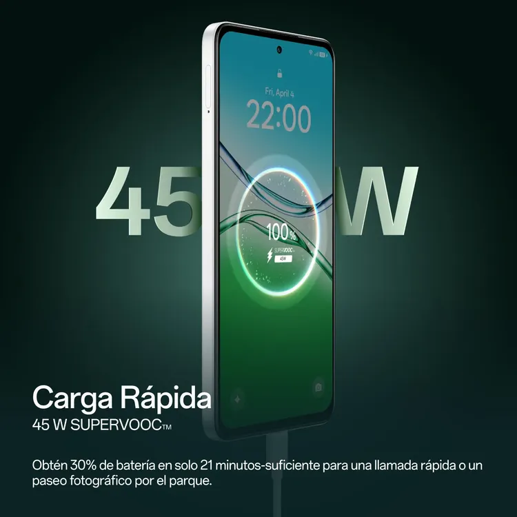 Protección IP65 contra agua y polvo, resistencia de grado Militar, gran batería de 6000 mAh, carga rápida 45W SUPERVOOCTM, pantalla ultrabrillante de 120 Hz