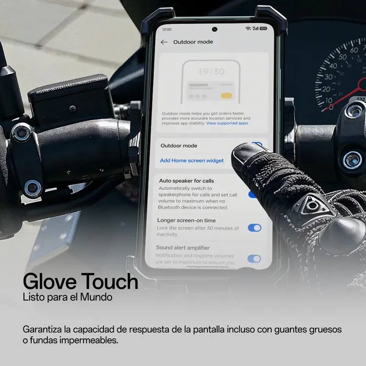 - Modo Guantes: Garantiza la capacidad de respuesta de la pantalla incluso con guantes gruesos o fundas impermeables.